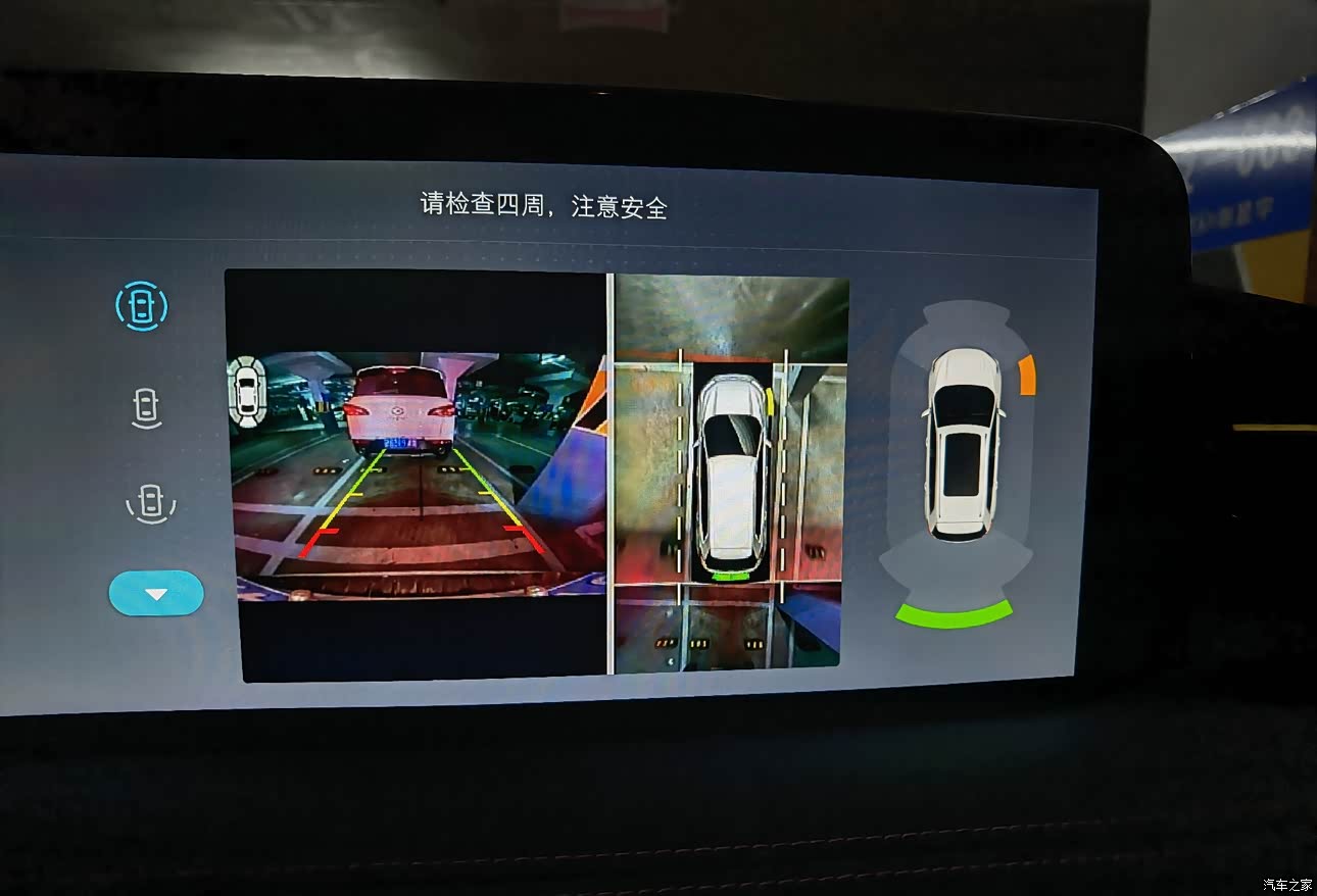 双联屏比较突出科技感,但是主驾驶仪表显示内容稍微单一,并且倒车全景影像分辨率过低。