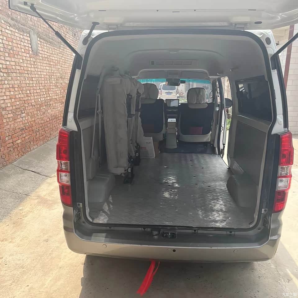 车头进气格栅很有设计两条杠加镀锘装饰的非常好看,下面LED灯四格也很有设计,双色漆的面包车除了金杯没有其他车有这样的设计了吧,这个颜色我真的挺喜欢的,开出去送货停在停车场一眼就找着了。颜色很有辨识度,车身车门钣金都做的很扎实,不仅是好看而且也很有安全性。