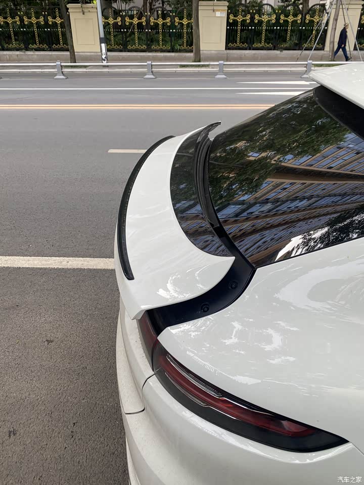 保时捷的外观家族设计还是明显。我选了矩阵大灯,辨识度还是高,尾灯也是德系最近几年流行的贯穿式,整个车身我觉得还是比较协调,颜色我没选,就是最初的白色,一个是白色是安全色,主要考虑这个。还有以后可以贴膜,卖得时候白色也相对保值。轮毂选了个21寸的,感觉和车身比较配,20、21差不多,我是怕22大了,舒适性和实用性要打个问号,主要22也贵,感觉没必要。最棒的就是尾翼,SUV里厂家自带尾翼的不是太多,它这个可以手动调节,可以按出来,或者车身速度高于80KM(还是90忘了)会自动升起,然后低于40还是多少会自己降回去,有点好玩,起码和普卡是个区分点。
