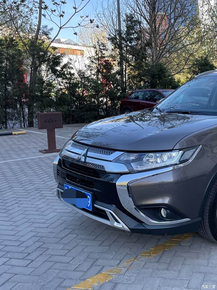 儿子漂不漂亮?看底下的图片。前脸设计大方简洁。三菱的标志也很显大气。格栅的设计也很有特点。在太阳底下一照,车子车漆很亮。显得高档大气。轮毂设计的太豪华。