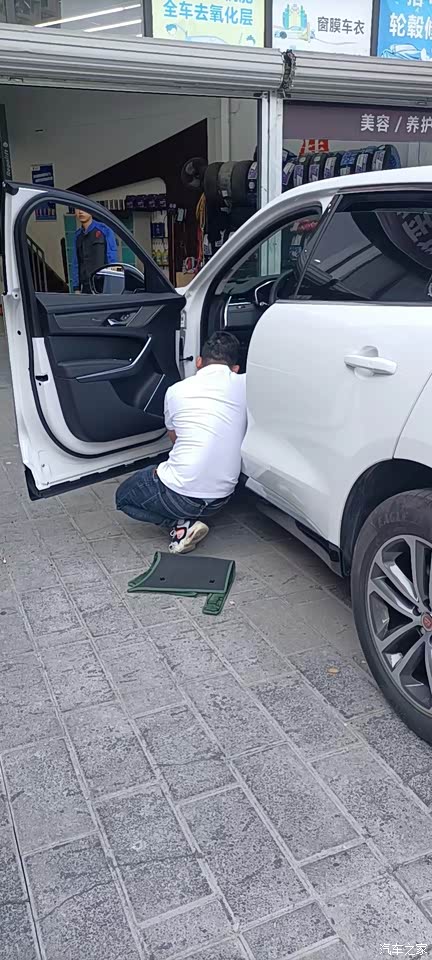 给它铺了一体脚垫又穿件衣服,车衣品牌遮盖了避免有打广告的嫌疑呵呵呵,别说没白帖有一次进地库时车转弯车速过快后屁屁刮了一下,当时心疼得不得了下车擦拭查看车衣除了有点刮脏车衣一点没刮坏,心里暗暗庆幸贴了车衣保护了爱车,出游必备呵呵呵……