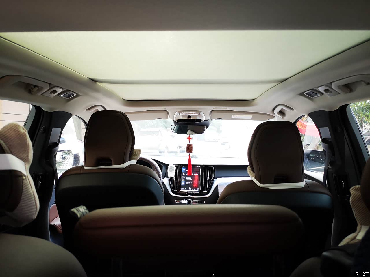 内饰整体上适用而不奢华,流行的棕黑双色搭配,身体接触之处有软皮包裹的点缀,9英吋的中控台显示屏触感流畅,中控台规整沉稳人性化设计,无众多的眼花缭乱的旋纽、按键和色彩,平整的收纳盒,貌似厚实的棕皮座椅。后排的小鱼缸设计算是一个嘈点。