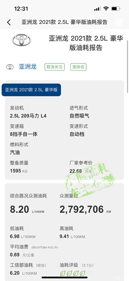 一家人自驾游还不错,后尾箱空间很大,能装下一家人的行李和食物储备。亚洲龙出行回头率还是很高的,黑色颜值大气,开车窗和下车就能听到陌生人的议论,虽然只是普通小车,但停放在哪个高档小区停车场并没有违和感。市区起步虽然不强,高速上加速感觉比较给力,动力刹车也像抛物线那样线性循序渐进。空间在这个B+级别顶多算是B级的普通水准,并没有越级的惊喜。