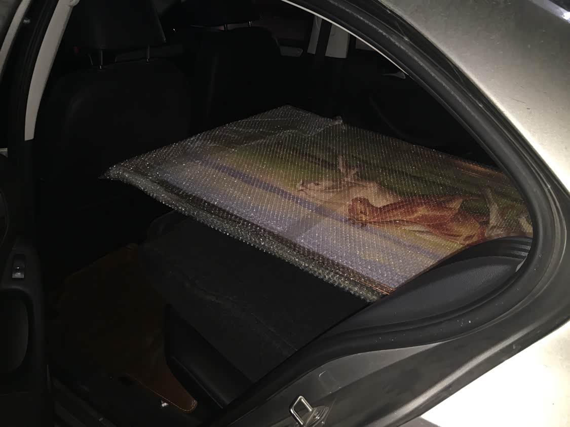 后备箱很大,也很深,把后排座椅放倒后进深两米多,我买的油画两米多长放后备箱正好。空间真是无敌了。