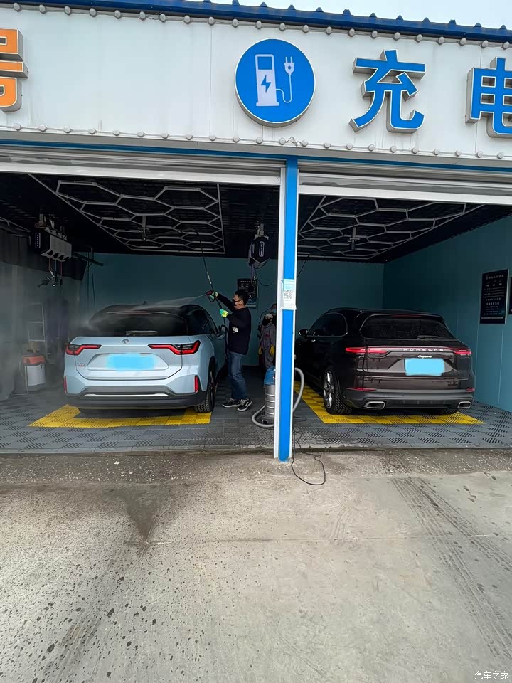 es6的空间很大,后备箱储物能力强,搭配蔚来商城的气垫床,露营的时候可以美美的躺在车里。副驾因为没有储物箱所以腿部空间更大了,中控台下的空间用来放女士背包很方便,不用再从后座拿包包了。洗车时候恰好旁边一辆卡宴,顺手拍下来了📷