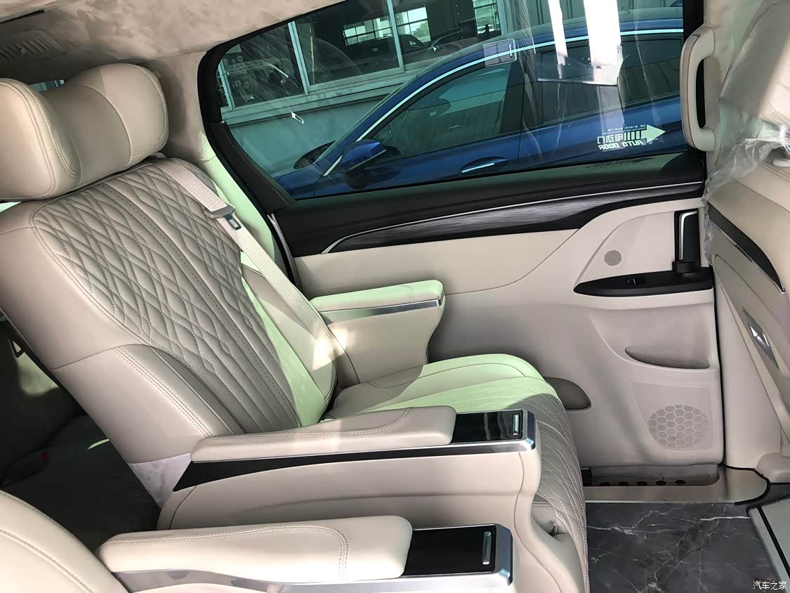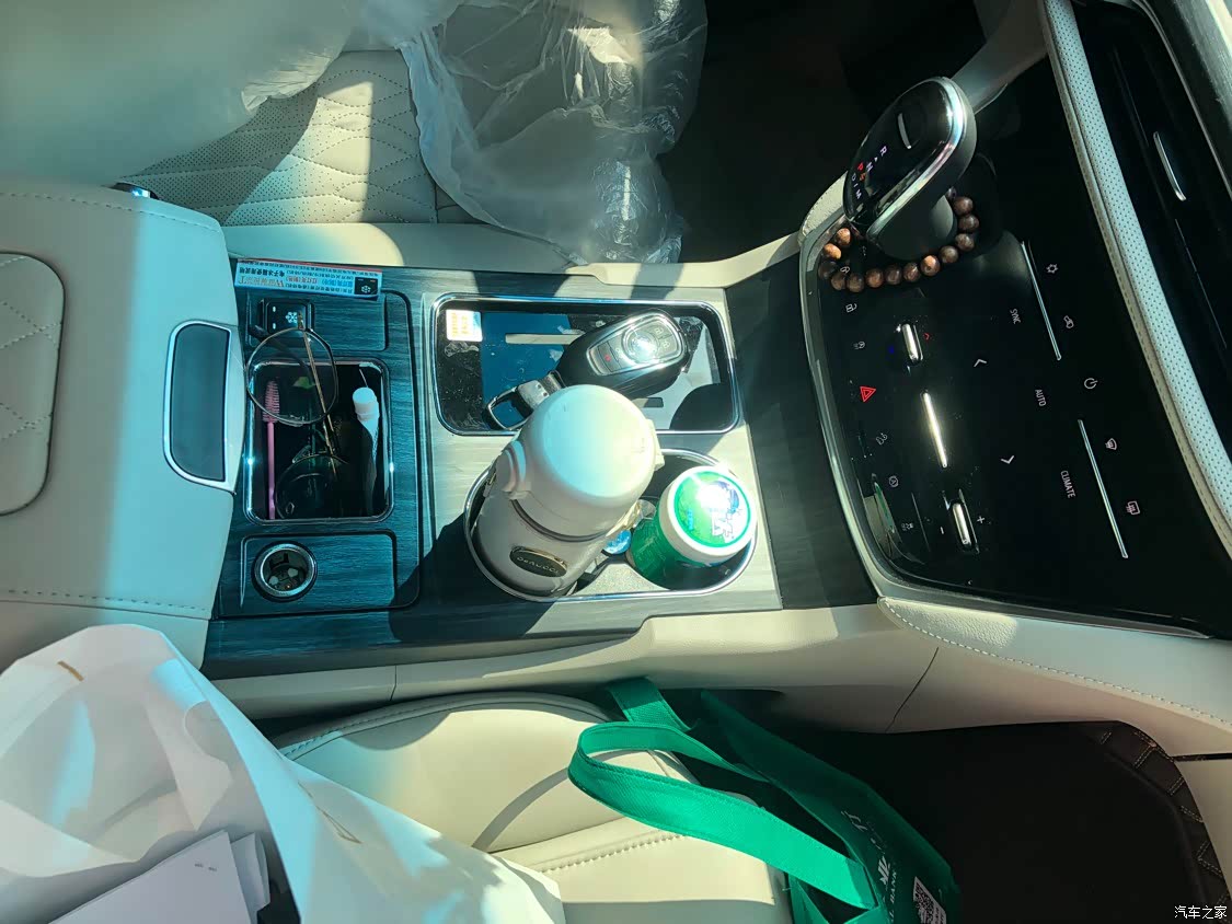 说一下里面内饰主要改过的东西哦,座椅出厂是布的,这个是一定要改的。我们把布座椅全部拆掉了。把第一排改成了电动的和座椅的通风和加热,因为我们家庭用的时候主要是我和老公坐这里。第二排参照第一排又加了一个座椅按摩,这样老公出差接领导时也能用到。第三排我们改成了可以放倒的。平平的像一张床的那样。主驾中间那里我又让添了一个冷暖扶手箱,饮料可以放个几瓶,也不用中间那个空空荡荡的不好看了。 还有哦,大家改完之后一定要通通风散个两三天的味道。那个皮座椅的味道我是受不了的,后来在网上买了去甲醛的清新剂慢慢味道才淡了些