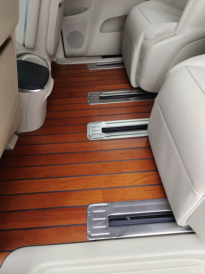 空间绝对没得说,在我试过的商务车里,它的空间算起绝对优秀的了,二排三排后备箱空间都很不错。我还专门铺了木地板,因为后期怕小孩子把车上给整脏了,不好打理,木地板选的这个颜色我还是挺喜欢的,感觉跟我这个车的内饰很搭。平时出门都是我当司机,然后我爸坐副驾,我妈和媳妇坐二排,老大在最后三排,回头老二出生了可以抱着,反正一家人出行毫无压力。
