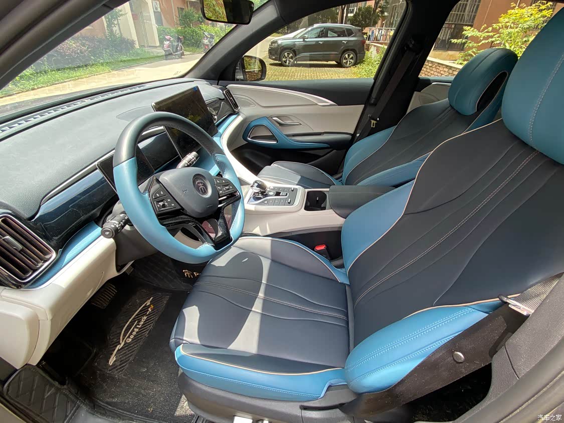 内饰可以和我叔叔的一代宋Pro对比,之前一代是纯黑的配色,现在用的是蓝灰的双拼配色,我个人还是比较喜欢二代宋Pro这种年轻一点的内饰颜色,当然萝卜青菜,各有所爱,有些人也喜欢黑的比较大气沉稳