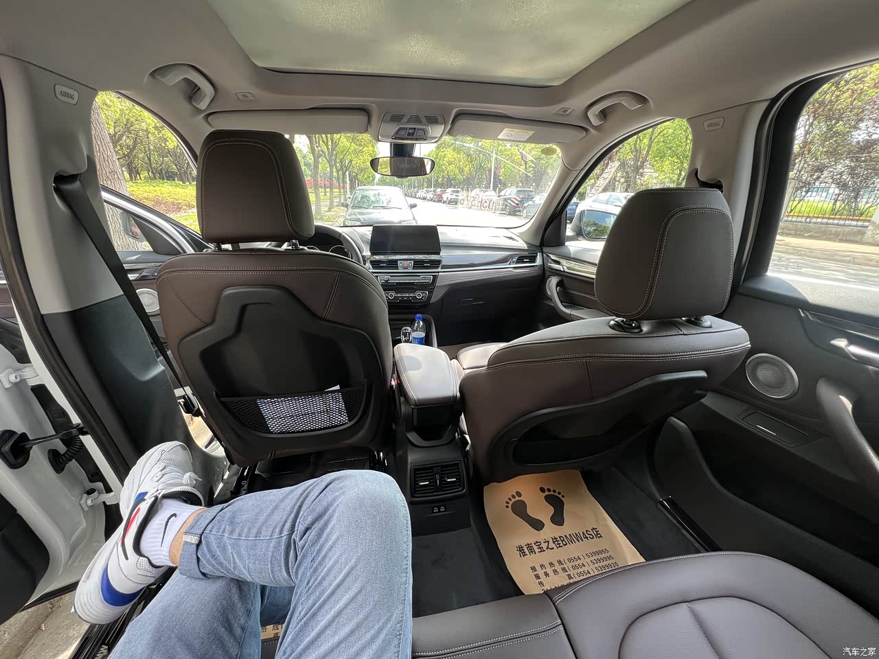 调整好驾驶位后的后排空间,轻松跷二郎腿,副驾驶位是我老婆在坐,座椅调到后仰的状态,后排空间依然够用。