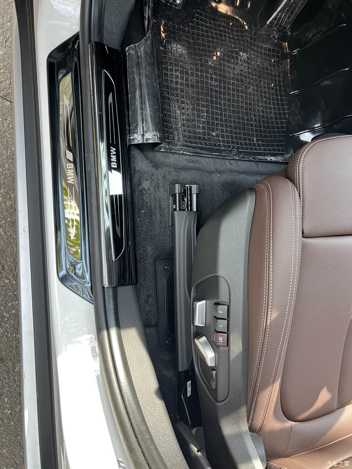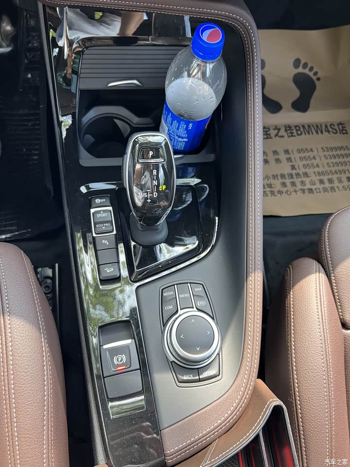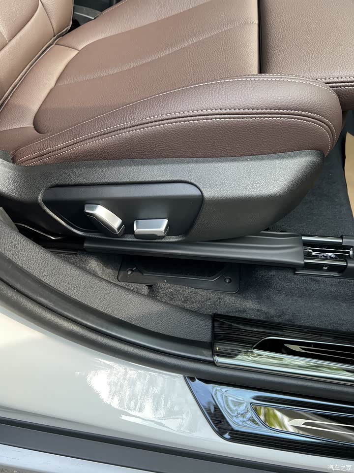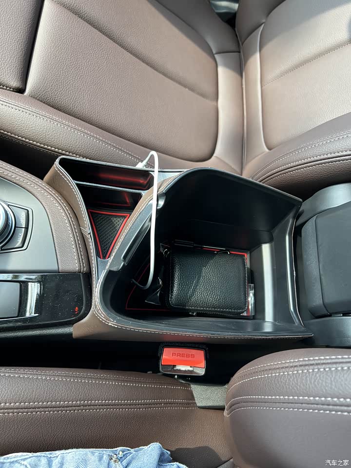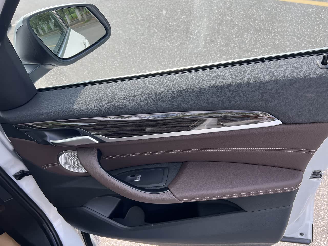 BMW经典摩卡色内饰,低调耐看,四驱版本中控和门板拉手处是溪水木纹比黑色好看。