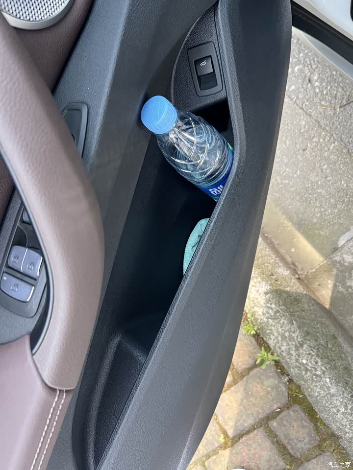 门板储物,可以放3瓶矿泉水,同时后备箱开关按钮也在主驾驶门板储物旁。