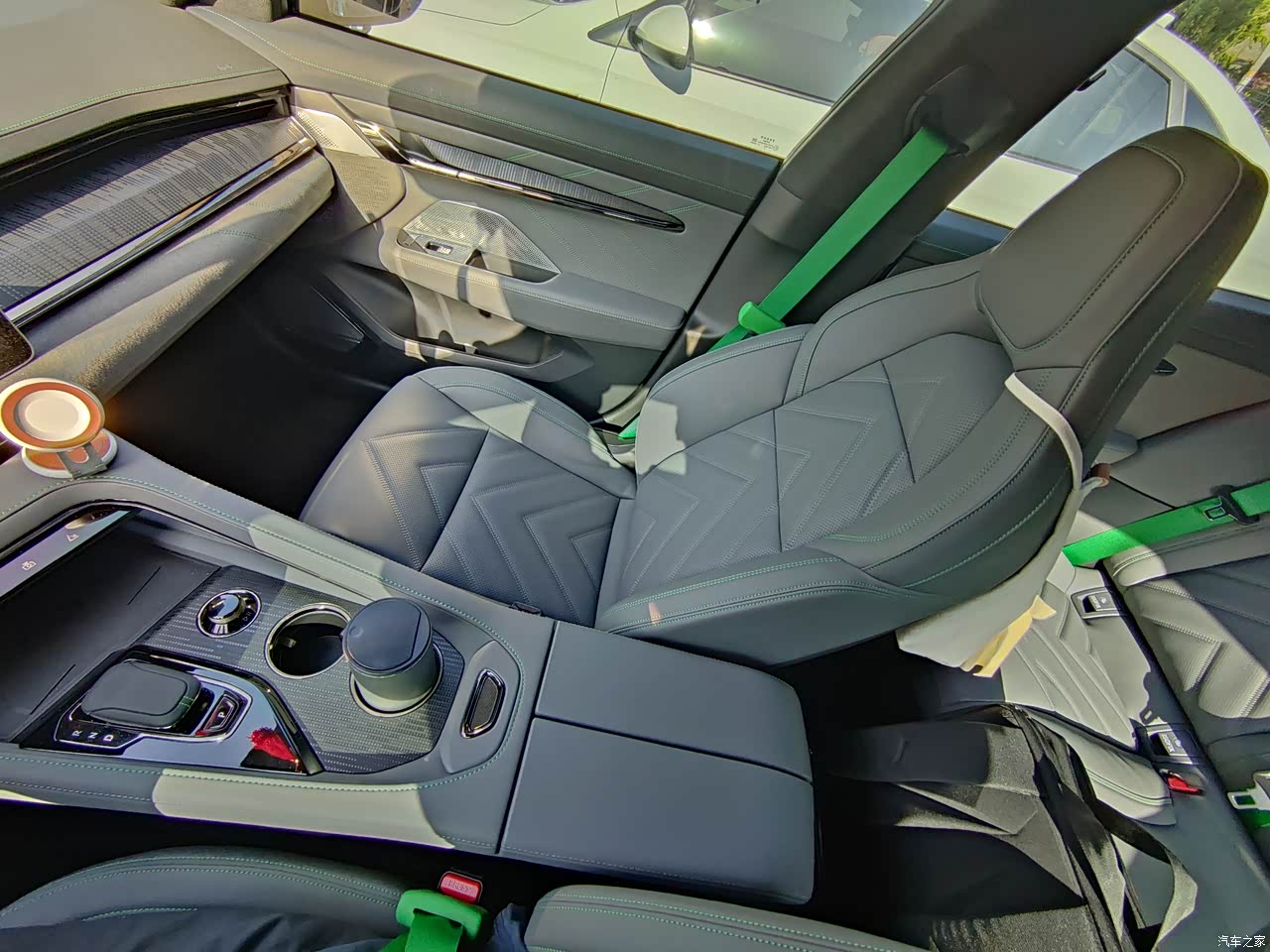 舒适性配置还是比较丰富的,选装了前排座椅加热,主驾座椅通风,前排还带座椅按摩。另外选了铂灰的内饰,真皮座椅,舒适度还行,就是有点硬,驾驶位缺少腿托 后排B柱上还有出风口,这点细节上加分,全景天幕,坐在后排视觉上会觉得比较宽敞