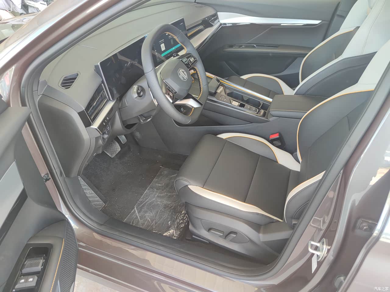 车辆的仪表台设计比较显眼,以黑色为主,两个连接的大屏,代替了古老的仪表盘,哈哈,仪表台上有两道浅黄色条纹,让整体感官更加活力。向下看是车辆的挂档区,边缘也是黄色镶边,握柄式档杆,取代传统档把设计,让手感更加细腻。一键启动四四方方,大气十足。车的座椅是灰色黑色混搭,周边嵌黄线,头枕也是才用了先进的航空设计,与靠背一气呵成。上边还有传统的刺绣工艺。 车辆的语音控制按在了方向盘上,这样更加方便使用,而且音量大小,语音操控也是在方向盘上,这样操作安全系数也是大大增加了。 车辆基本没有什么异味,敞开窗户,晒一天就什么都闻不到了。