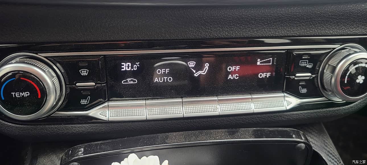 后排出风口在扶手箱上,两个口。不能调节出风量,只能选择开启和关闭还有风向