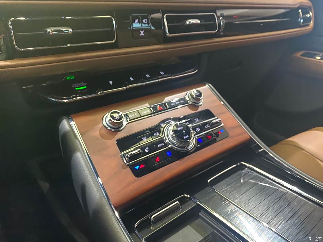 厚重的方向盘搭配上全液晶的仪表盘,从美观程度上十分好看,再加上棕色内饰搭配上木纹的中控台也是很有美式豪华风格。