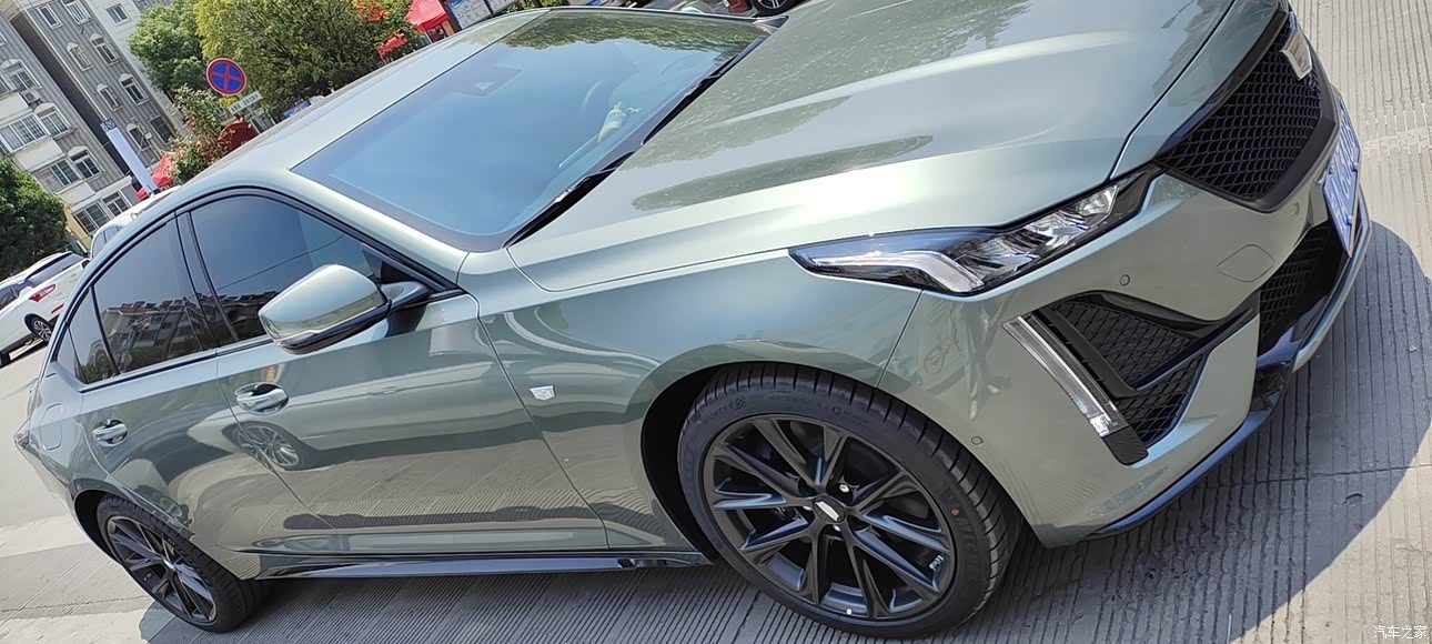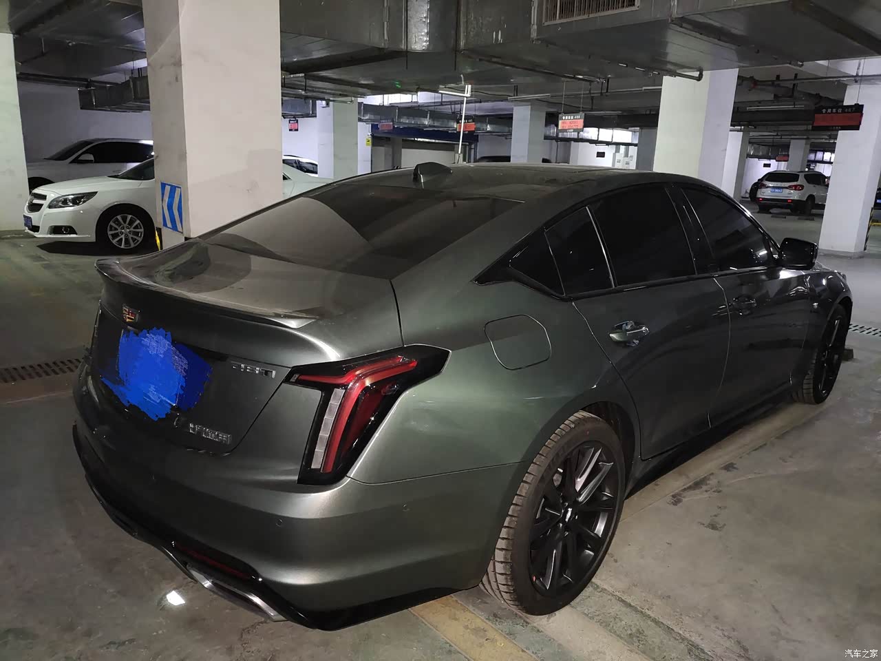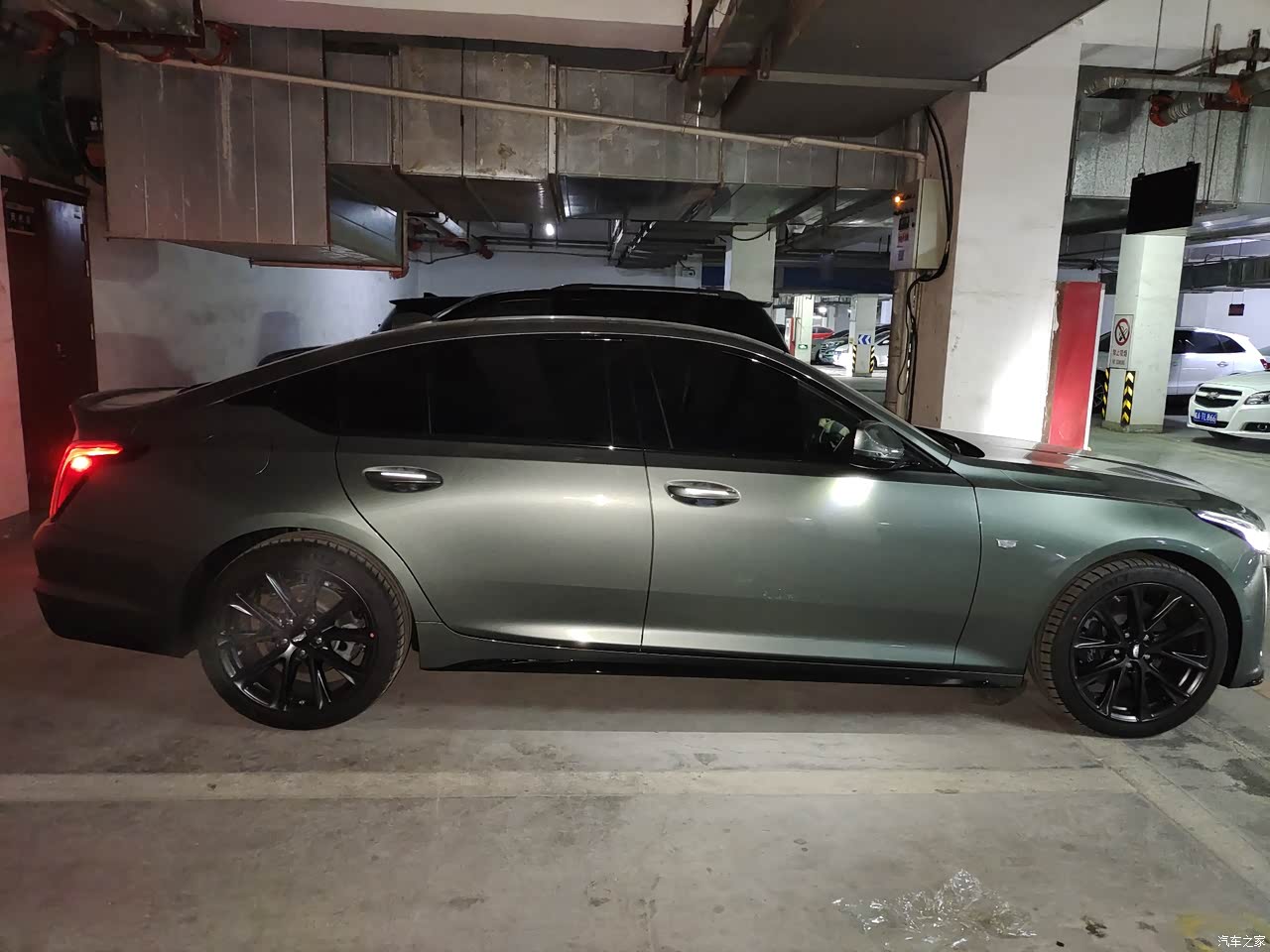极光青yyds,我把车前后的镀铬条全部贴黑了,更好看了,这还得感谢世贸店的小哥哥小姐姐们帮我谋得的小福利,省去了我改全黑中网的麻烦,还送了电尾氛围灯什么的。极光青很耐脏,无论是太阳光下,还是车库里,颜色都让人眼前一亮,外面看超级运动,车库里有点“绿幽灵”,灰中带绿,像草丛中蛰伏伺机而动的猛兽。几天驾驶感觉下来,CT5还是很适合女生的,身高一米六出头,我调好位置后后排腿部空间挺大有三四拳,头部一般般,也并没有顶头,还是比较适合女生出门代步的。油门算比较跟脚了只要舍得踩,刹车也是很灵敏,就是略硬,久了可能有点累,不得不说隔音是真的好,启动声还是挺大的,全车库都知道你出门了,但关上门,车里就是你一个人的世界,上下班路上放点音乐,Bose至臻很ok,开舒适模式悠闲地开很享受,加上坐椅按摩加热通风应有尽有,想佛系就佛系;当你调至运动模式,又能感受这部车带给你的年轻与激情,配合换档拨片与10at,想躁动就躁动,布雷博的刹车卡钳和MRC电磁悬挂懂得都懂。网上说内饰不太有科技感,建议亲身感受下,当你坐进来又是另外一种感觉了,方向盘握着很舒服,冬天还有加热,触手可及的地方用料扎实,手套箱也是植绒的。中控区的实体按键特别方便,谁用谁知道,一键直达,还能保证行车安全,比在屏幕上点半天方便太多。坐椅的包裹性很优秀,按摩加热通风一个不少,只要了解下这个级别的车配置的都知道,CT5是相当有诚意的,同级别车不带的hud也给你安排上,什么MRC电磁悬挂流媒体后视镜感应雨刷后桥限滑差速器全速自适应什么的都不必说了,两个字好用,同级别上哪儿给你整这些配置。辅助驾驶也很好用,路况好的地方直接打开,扶好方向盘就完事儿了,很舒适,再开个坐椅按摩,哈哈很减压。我很欣赏自带的空气净化,新车多少有点味道的,一启动就闻不到了,挺好。还有360全景影像的实体按键,很好用,过拥挤路段,直接打开很安心,CT5又宽又长,这点很重要。