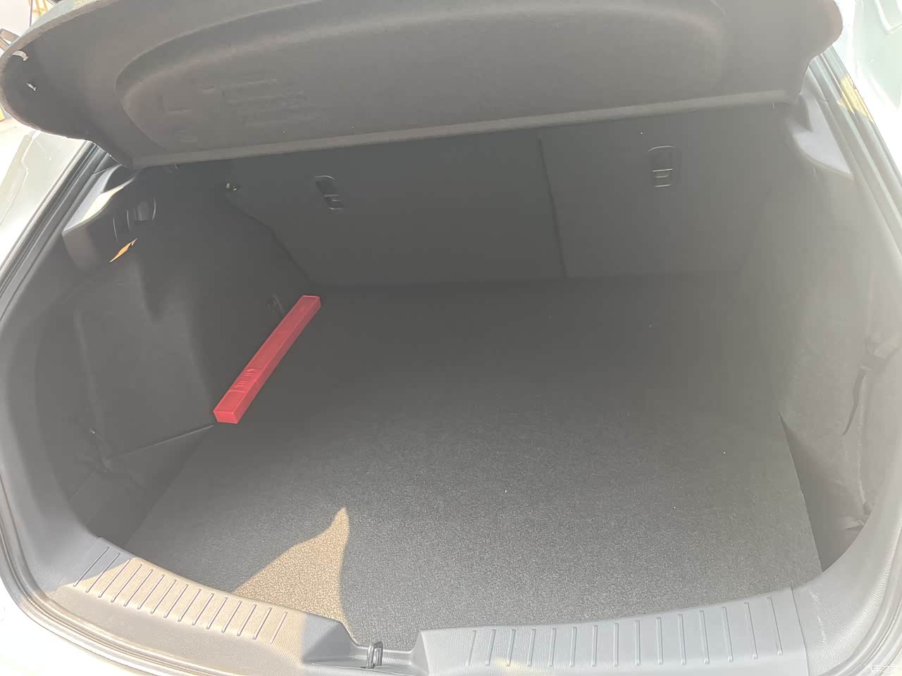 后备箱的空间很大,也很平整,后排座椅能放倒,稍微有一点点不平。后备箱还有捆绑钩,这样装的物品不会随意乱跑。