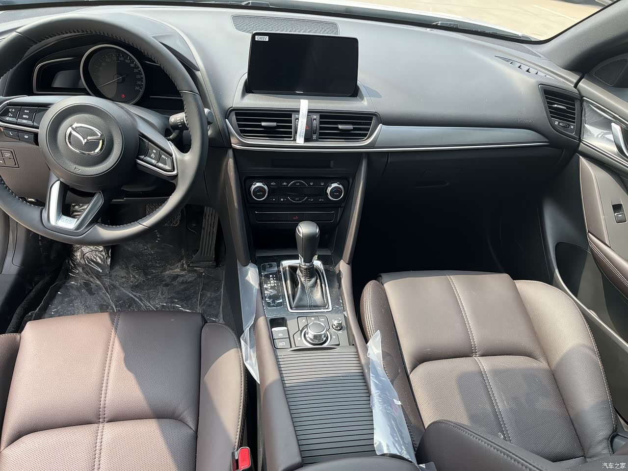 多功能方向盘用着很方便,开可以接打电话,而且是真皮的,摸上去手感非常好,粗细成度也正好,方向盘很精准,正如马自达的黑科技吧,指哪打哪
