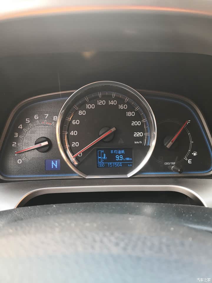 纯市区应该11个油左右,综合油耗目前9.9升,就是降不下来,可能是车老了,请忽略公里数,由于是二手车,当时是调低了五万公里。