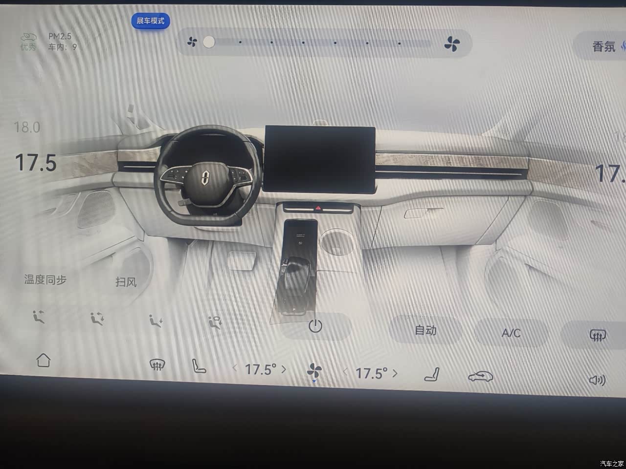 这车的话,两边的温度可以不同步。平常开的话,温度在24度。我老公的话那边调整20度,挺实用的。