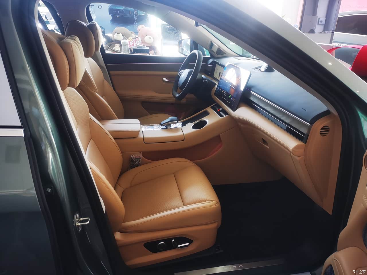 棕色的内饰搭配着绿色的外观,档次感真是感觉和余什么说的一样媲美百万豪车的内饰,哈哈。确实好看。氛围灯颜色128种,带音乐闪烁,还有那么一丝丝浪漫。