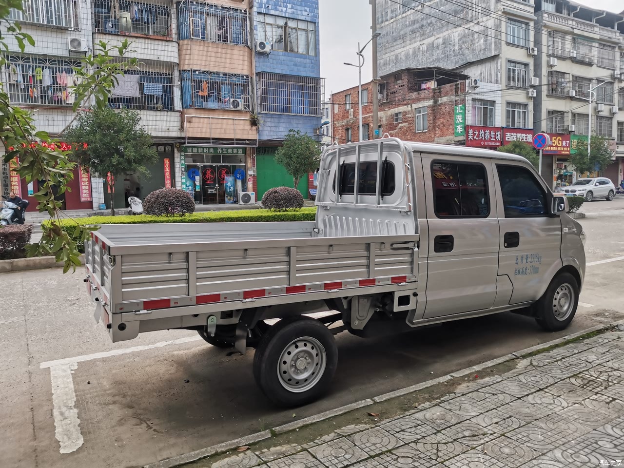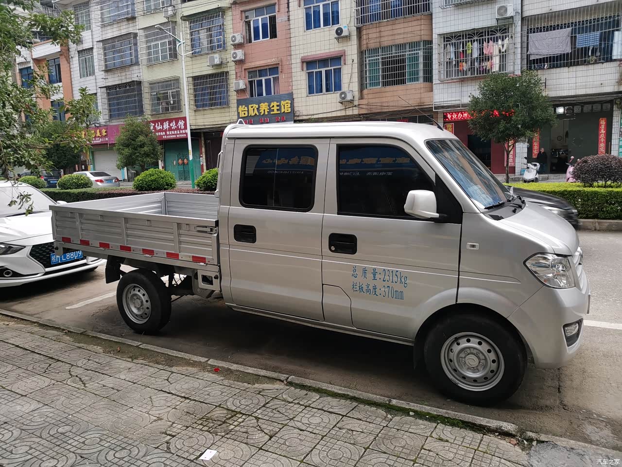 前脸霸气,空间超大。车厢尺寸够用,后排座椅宽度够宽,长时间坐也没问题。配置齐全,中控锁电动升窗空调前雾灯电子助力等等,货车价格小车体验。平时拉人拉货一点问题也没有。车神比例协调,看上去很好看。提速快,没有什么吃力感。油箱够大,加一次油可以跑好久,车身板正,摇晃没有松散感觉。遥控钥匙比较方便,上下车一按就可以,驾驶室空间够大,离头部还有三四拳距离。前排后排都有台阶上下车,小孩子也能轻松上下车,整车质感比较好。发动机超长质保,安全放心。