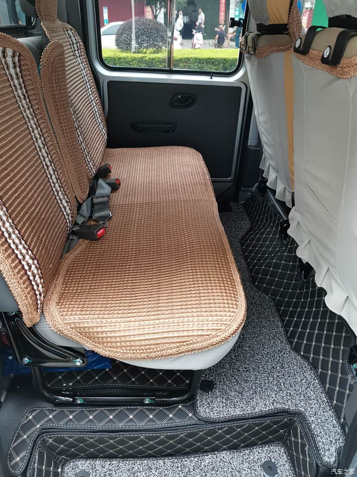 空间很大,最满意的就是空间。后排和小车差不多。靠背没有其他货车那么直,有斜度,这样坐着比较舒服。