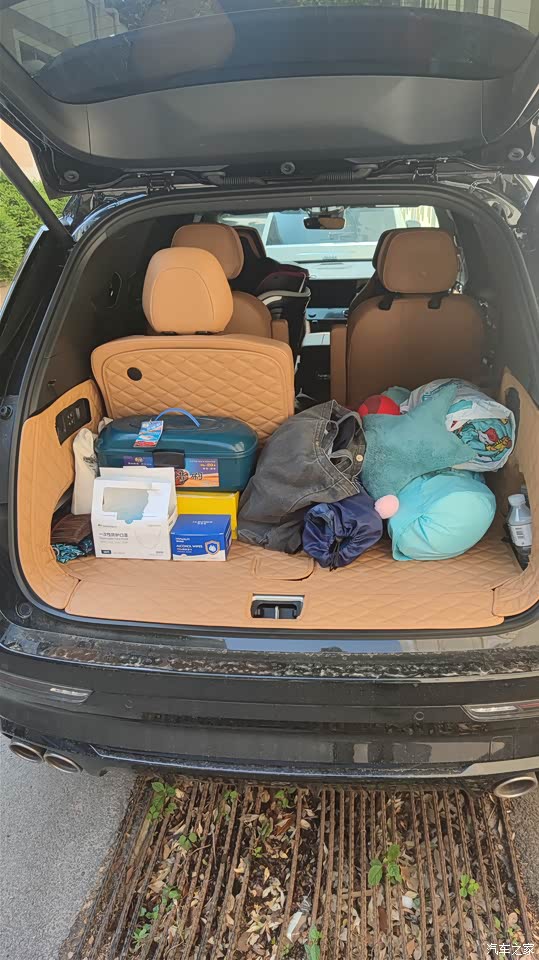 第三排放倒1个,扩充后备箱,放1个领克商城上买的后备箱折叠箱,当桌子,另1个座位坐人,1条腿在二排座后面,另1条腿在过道,当时就这么在4S店试了,没问题,本人189身高,90kg体重,坐着没问题,比较舒适。长途自驾,媳妇开车,老人陪孩子做二排和副驾驶,我坐第三排解近2个小时,感觉还行。第三排空间没有网上说的那么不堪,我189身高亲身体验过。