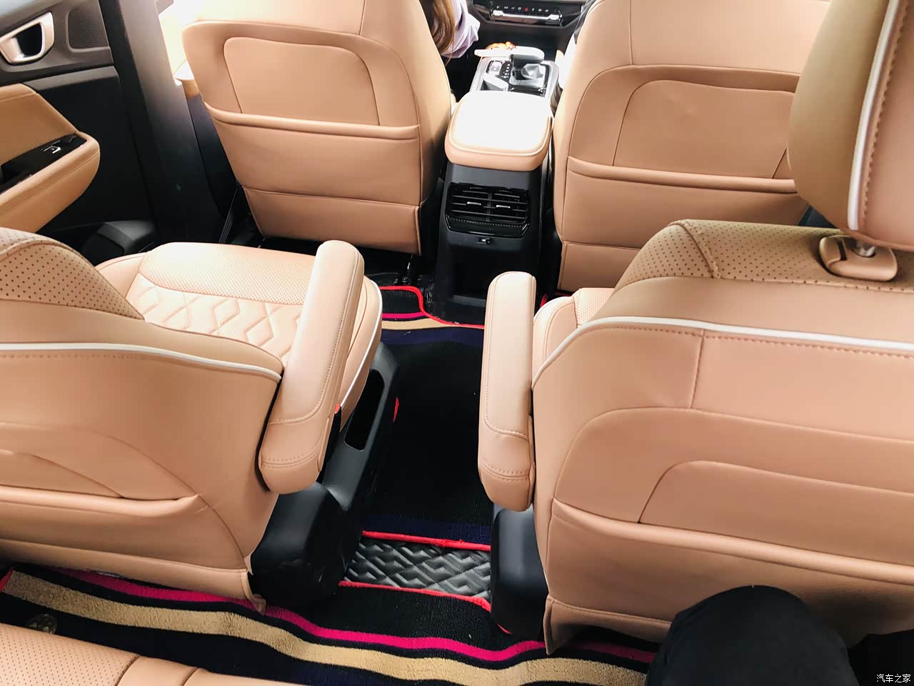 汽车第二排座椅在第一排坐人的前提下,后人乘坐膝盖位置对前排座椅靠背还有大概一掌多的距离,舒适性感人。