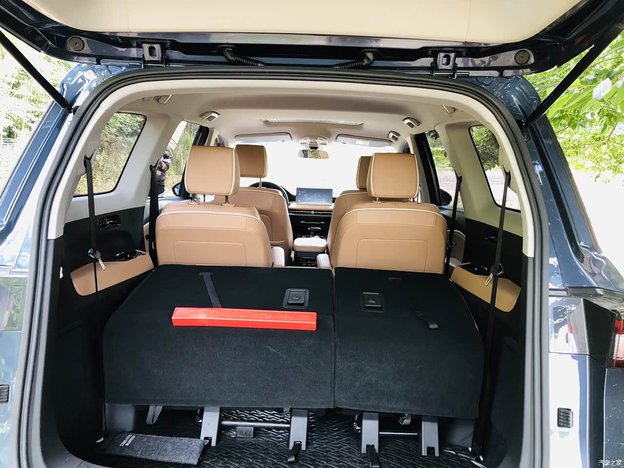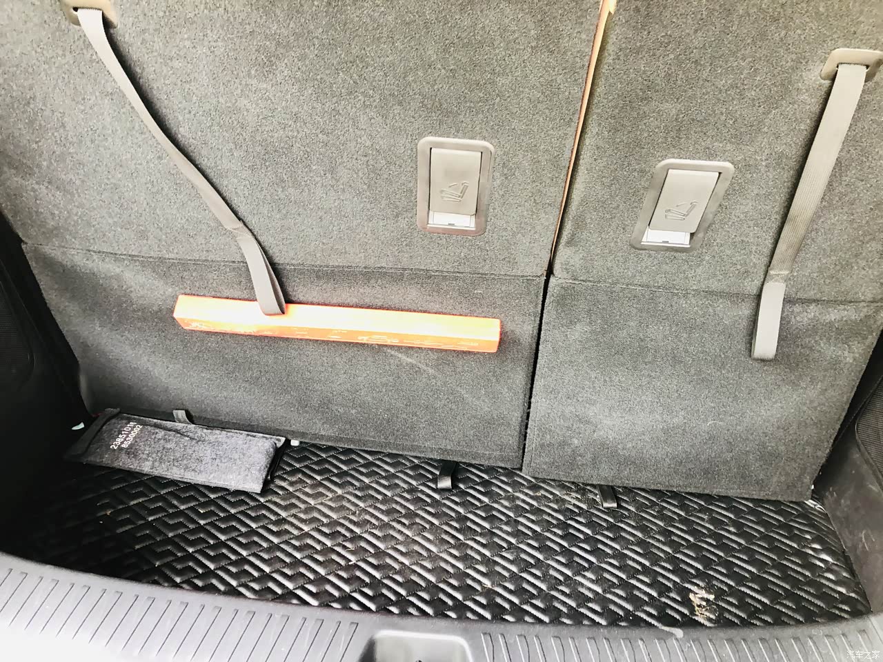 这是7座状态下的后备箱,存放三个行李箱和一些杂物可以说是毫无压力。