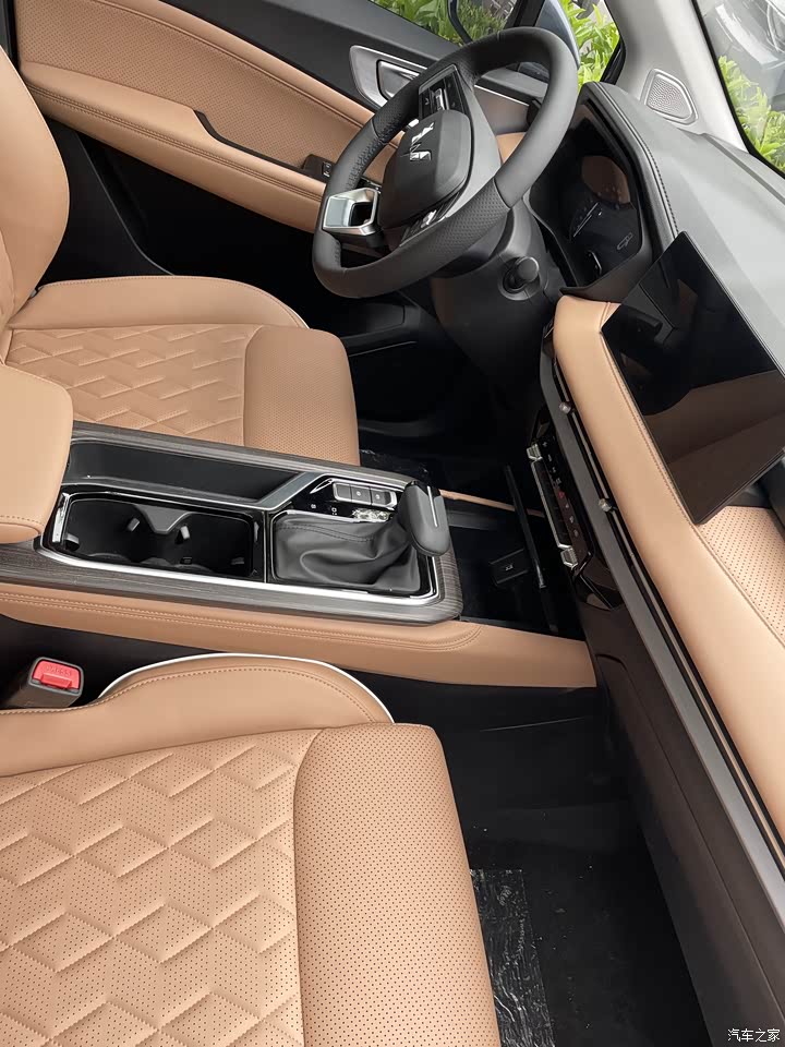内饰布局很好看,车内采用了很多软性材质进行包裹,座椅也是透气的皮质座椅,舒适感很高。