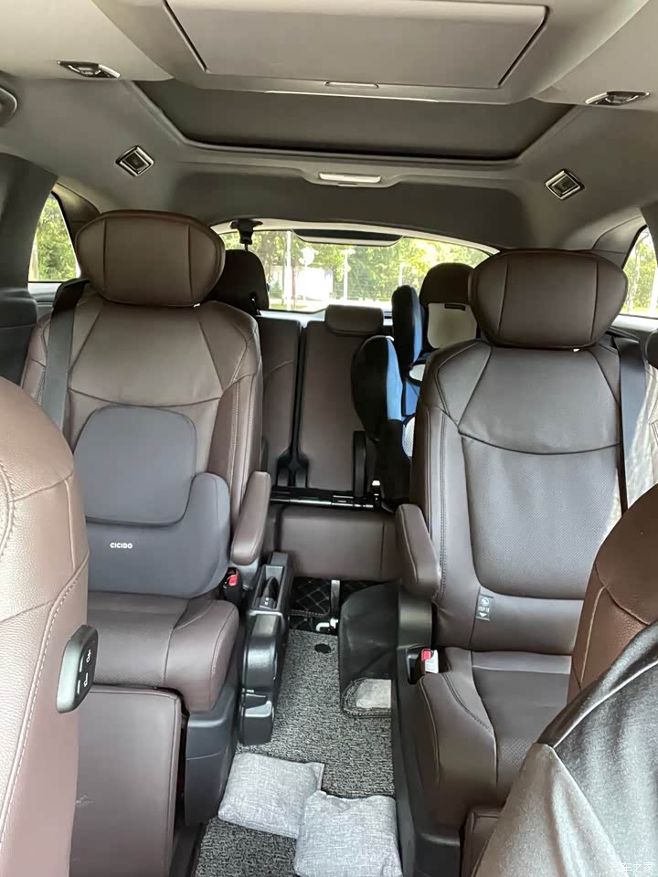 顶配座椅配置全,前面讲了,别乱改座椅,都没有原装的好。 空气过滤功能非常好,有效减少PM2.5含量,空调4个分区,在驾驶位不好控制中排两区空调。 第三排坐小孩或者比较瘦的最好,平时很少用的到。 减震我看有车友说硬,我觉得还可以,过减速带通过性不错