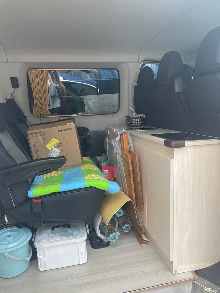 空间宽敞啊自改的床箱,在橱柜厂定制的,自己叔叔家开修理厂的所以车是在自改的,某宝买的隔音棉,柴暖水盆电磁炉和5度电3KW的移动电源