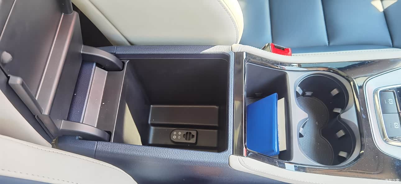 前排两座椅中间的储物箱是真的大啊,个人感觉起码有3L吧,就很绝!