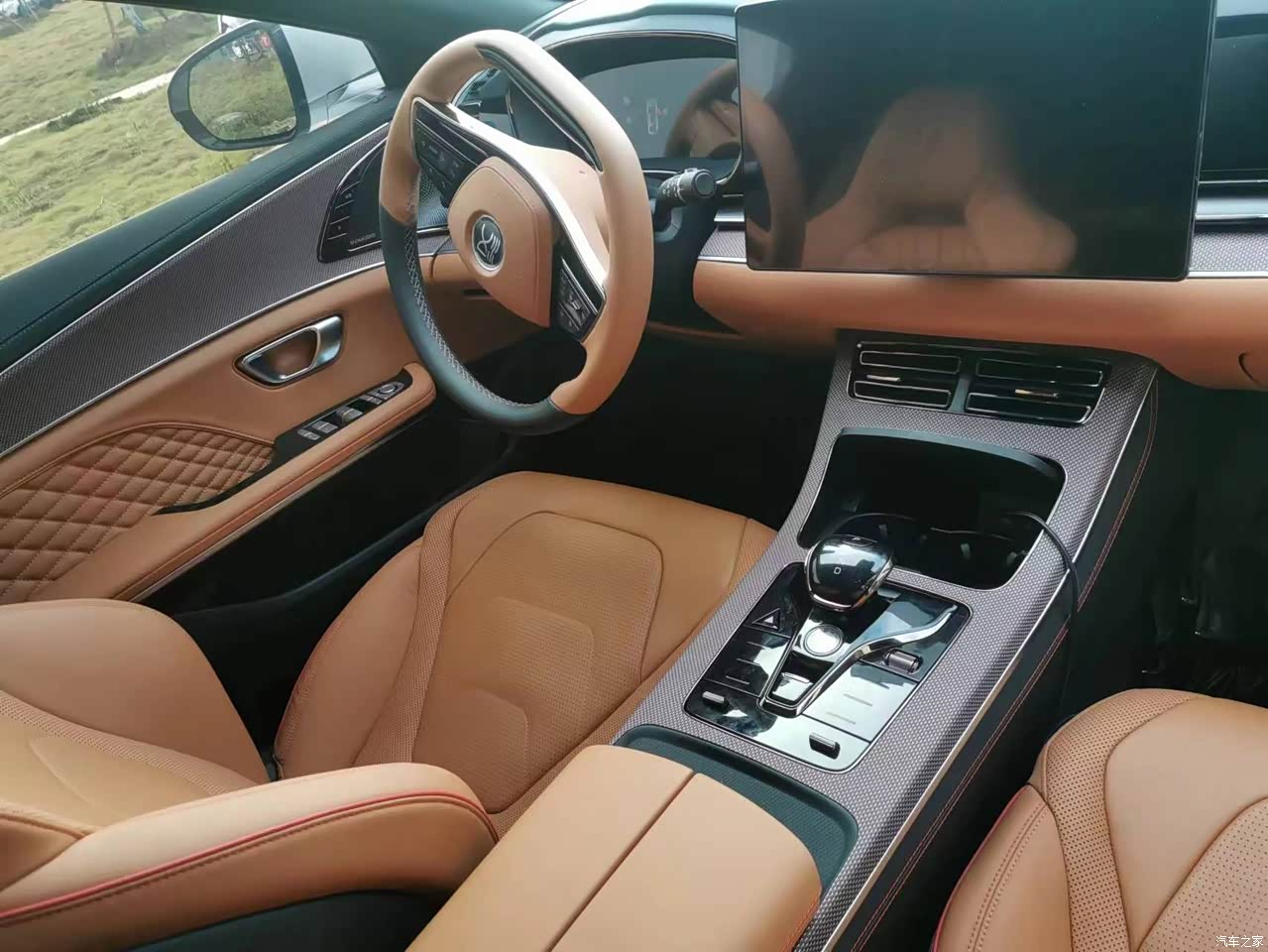 整车的内饰十分漂亮,都是真皮的,我个人选的是橙色运动的座椅看着十分漂亮,想买个比较醒目的内饰,个人感觉不喜欢棕色内饰,总感觉老气,这个内饰配个运动座椅,十分的给力