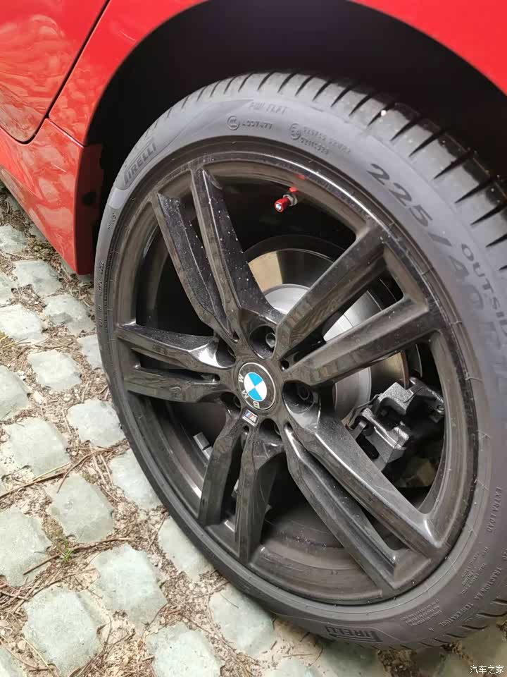 老婆喜欢!还说啥呢!设计和做工都对得起宝马的品牌,后双边单出的熏黑排气够运动,黑色轮毂是老婆自己选的,红色气嘴是我买的,还挺配的!