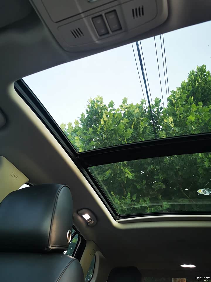 秀一张前方45度的照片,一览全貌,看起来是不是很大气,简约。 超大全景天窗,故意拍的有树,每年春天出去游玩,走在林荫道上,都感觉整个春天都要钻进车里,心情是不是加倍美丽。 还有在夏天的晚上,心情不好的时候坐在后排,打开天窗,仰望星空,内心的压抑也是一扫而空。