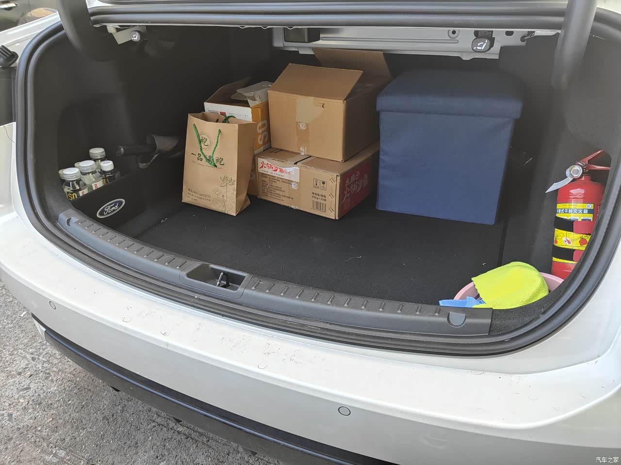 后备箱很大,目测放四五个行李箱都无压力,方向盘下面还有一个小小的格子,我用来放零钱