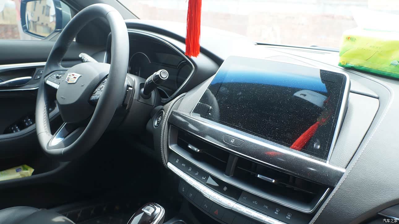 内饰就是简简单单的黑色,来吐槽一下,凯迪拉克的内饰实在是太简单了,还是喜欢棕色内饰,大连屏的设计,看上去一目了然,我比较喜欢凯迪拉克新出的电动车 锐歌的大连屏,希望早日升级成大连屏,看上去更科技感。