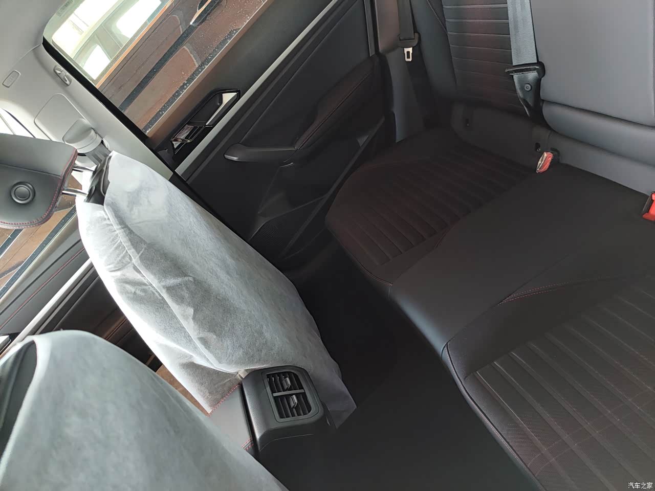 这是我去店里面看我的那辆车的时候,车是真的新连座椅套都还没拿掉。乘坐空间方面感觉还是差不多的,毕竟轴距放在那里基本也够用,做五个人也不会显得太拥挤。因为新车刚买没多久,也没有出去自驾游过,所以也不清楚。五个人做满的话,开远一点会有什么样的感觉。只能说够用就好。