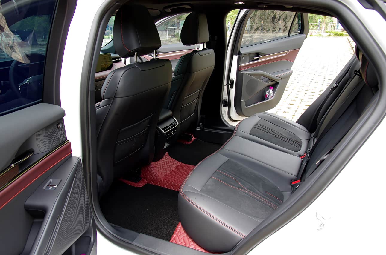 本人身高1.76米,胖子一个,司机嘛,其实只i关注驾驶位啦,舒适、宽敞。后排我坐进去距前排椅背都无法用拳衡量,整整一肘,轻松翘二郎腿。后备箱数据在那里摆着的,很大。