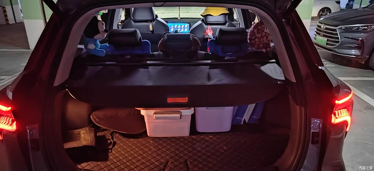 我172的身高,后排有3拳的空间,很够用了,并且门板和后备箱的储物格很多很大,放东西方便