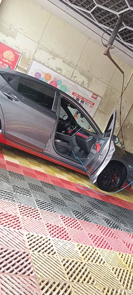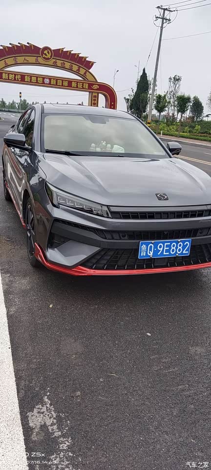 运动套件我特别喜欢还有就是灯解锁或者是锁车都是流水,是贯穿类似于奥迪A6的那种灯。我这款是耀石灰整体而言,在太阳光底下会看着放光。我这边一天,然后就是也没洗过车,有灰尘,上面看着不是很亮。