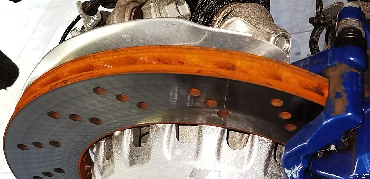 宝马终于在四个轮轴头涂黄油了,然而,海上漂泊一个月,魔都室外再放3个月,刹车盘外沿锈蚀也挺厉害