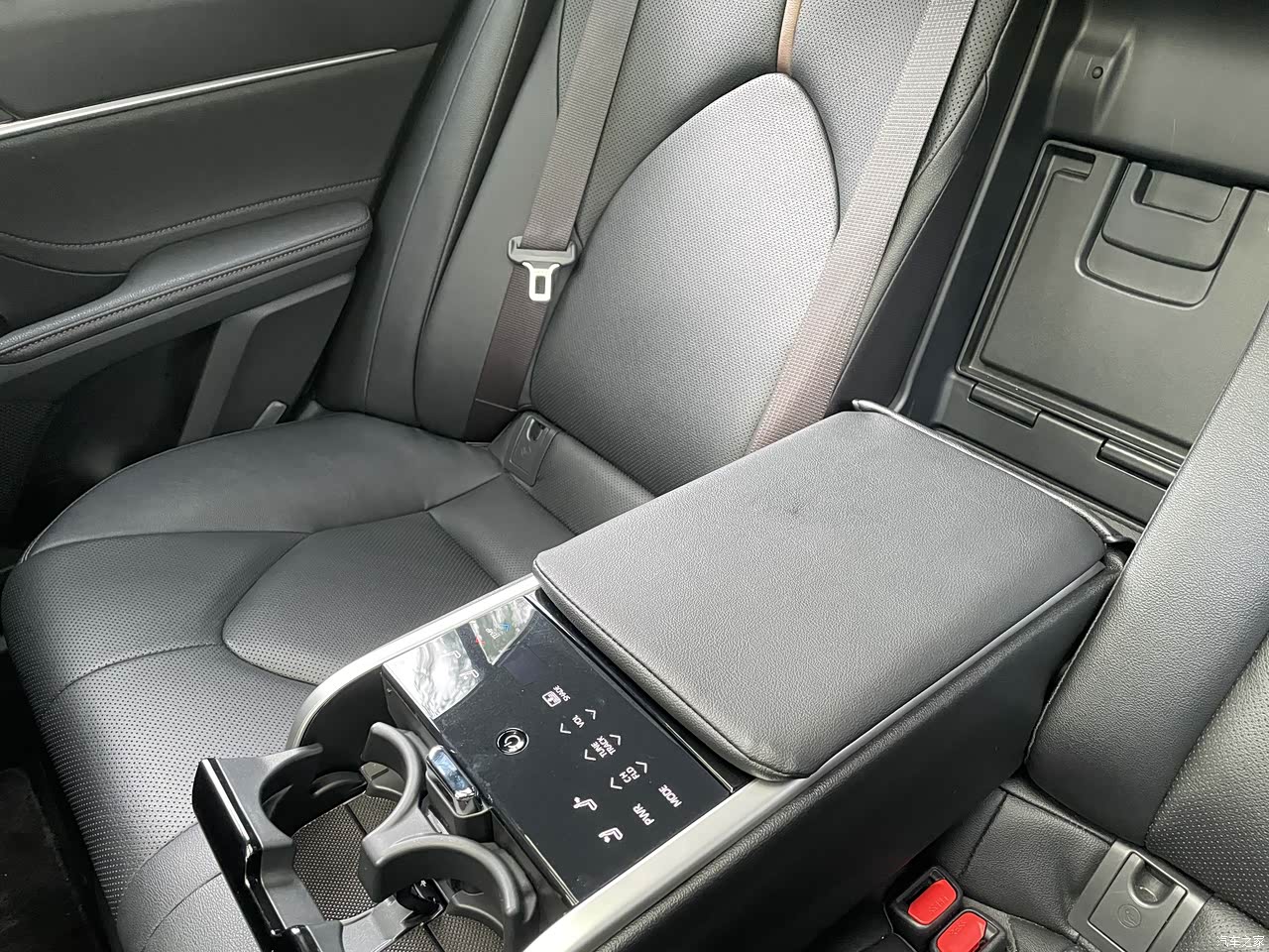 凯美瑞的舒适性感觉不错,座椅坐起来很舒适,不光可以调节靠背角度和座椅前后,还可以调节腰部支撑和腿部支撑,不论是开车还是乘坐时间久了都不会不舒服。后排空间用的不是太多,偶尔拉拉朋友,得到的反馈都是坐着舒服宽敞,后排还有中央扶手,带220V的插孔和两个USB充电口,扶手上的控制盘可以调节后区的空调,后风挡和后门车窗都有遮阳帘,很人性化。