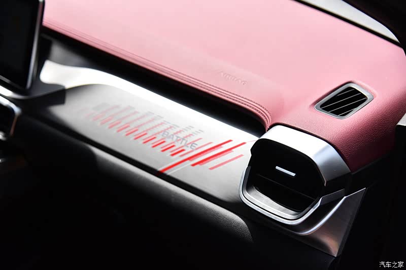 前脸使用大块的饰板,形成一个X造型,前包围两侧是仿进气槽的设计,也很有设计感,红色的装饰线有点小小的挑动神经的意思,也是特别个性的地方。