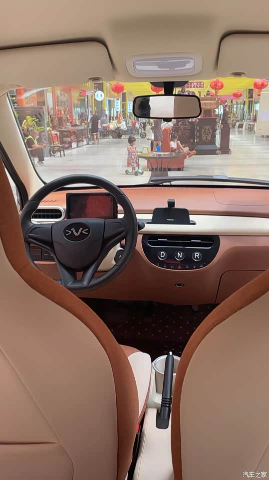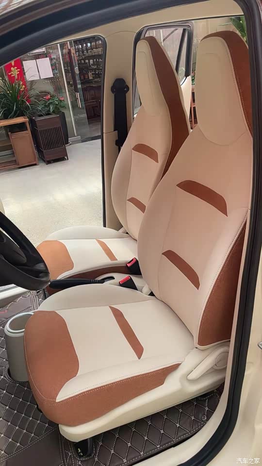 内饰整体也是棕/粉双拼色的,操控台也是十分的简单,内部座椅坐起来舒服,按键式的换挡设计,显得车辆内部设计简约而不失高雅,智能仪表盘、手机支架是标配,并且还配备有水杯盒设计,非常人性化。对于内部整体设计来说,简约而掉档次。