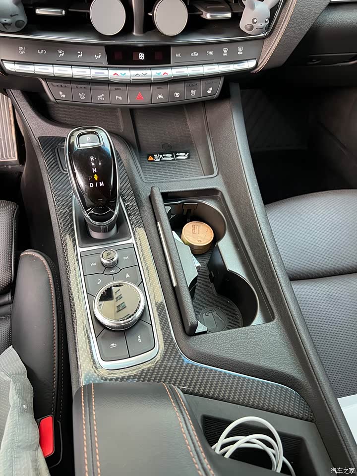 除了副驾驶的手套箱,小物件的存放位置设置的挺多,有专用的钥匙位、无线充电位,扶手箱的前端也设置了手机槽。中央扶手箱和手套箱的空间足够大,唯一的遗憾就是杯架没有收紧装置,颠簸路段杯子会因为松动而发出些动静。