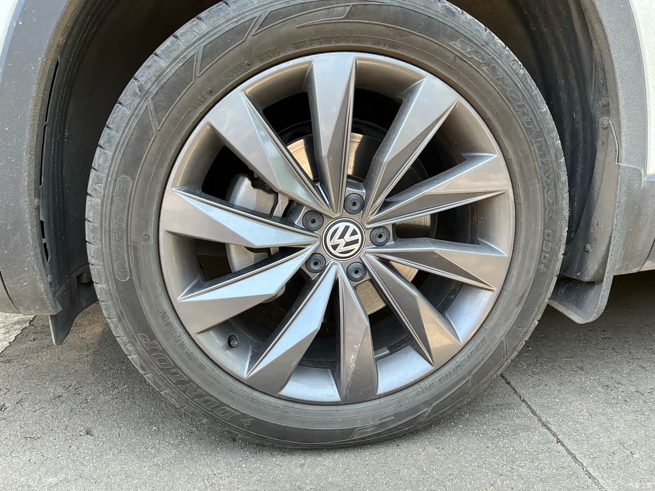 探岳外观还是很上档次的,你看他前脸,蜂窝状的进气格栅,飞翼式的大灯,侧面看运动感十足!你们发现没,我的轮毂和相同的车不一样。我是额外加装的,有没有更大气