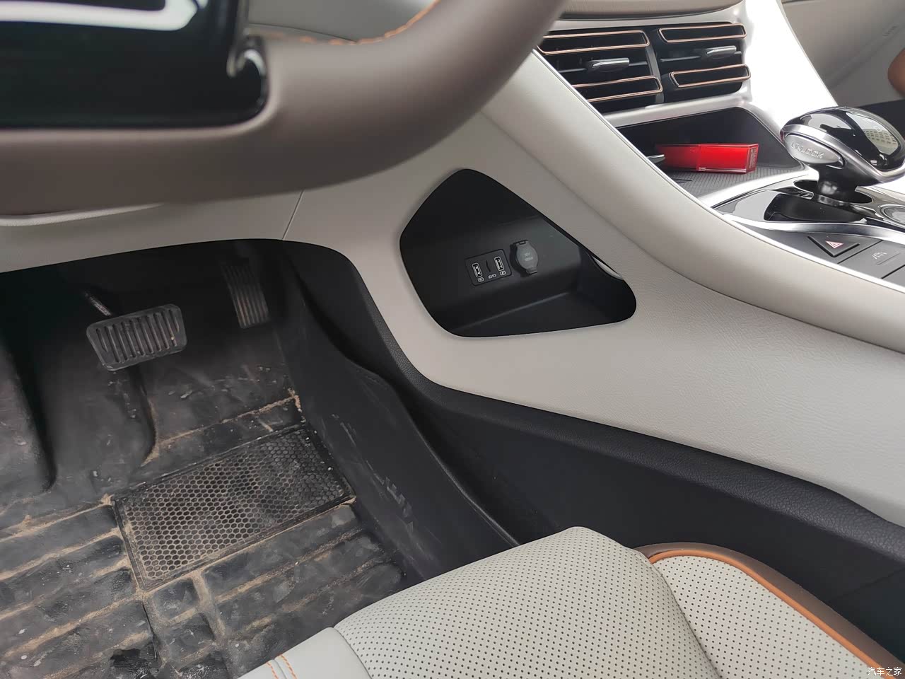 相比我自己的秦p,前排可利用的储物空间简直翻两倍,大屏正下方镂空设计,可以多储存不少东西,配的也有充电口。
